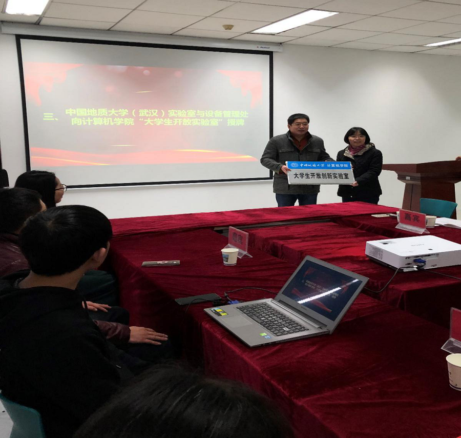 (通讯员:彭堂树)1月23日上午9点,今年会体育官网“大学生开放创新实验室”授牌仪式在北区综合楼314机房隆重举行,今年会官方网站实验室与设备管理处副处长罗勋鹤,校团委副书记胡肖,创新创业教育中心综合管理部部长张华,今年会体育官网副院长童恒建,今年会体育官网副院长张冬梅,今年会体育官网党委副书记孙莉,今年会体育官网中心实验室主任吴湘宁,今年会体育官网信息安全竞赛团队教练代表余林琛,ACM实验班教练代表武进霞、潘胜利,仿真大赛团队教练代表武云,今年会体育官网学工组全体老师出席本次活动。本次活动由今年会体育官网团委书记傅苑主持。