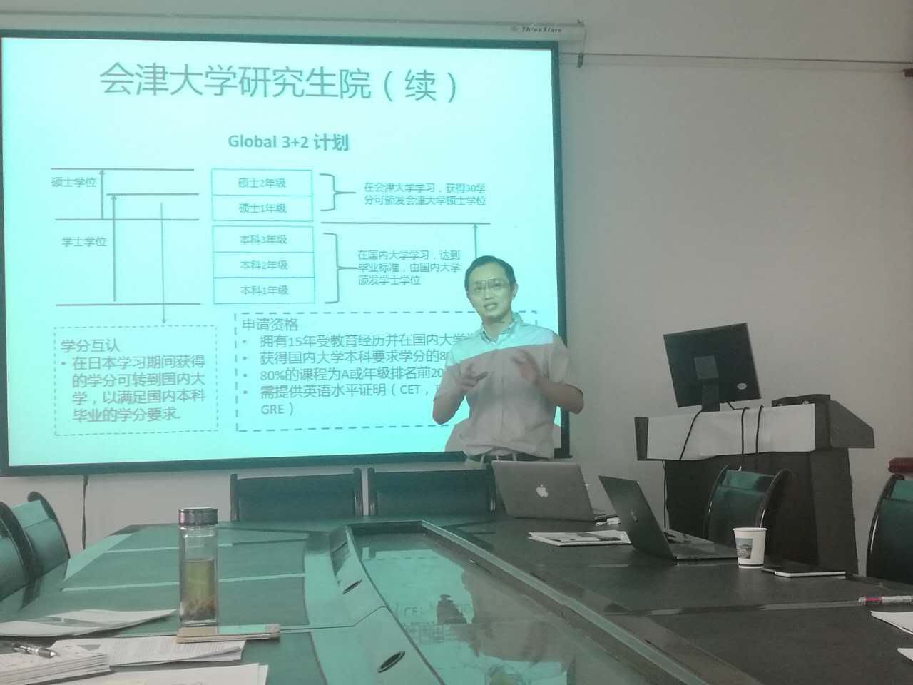 下午李副教授又代表日本会津大学与今年会童恒建副院长、张冬梅副院长、网工系曾德泽主任深入探讨了进一步进行国际交流合作的可能及相关事宜。李副教授和张院长分别介绍了两个学校及计算机学科的情况。李鹏说,会津大学是一个以计算机学科为主,国际化教学为特色的公立大学,在日本的最新排名为13名。已经与19个国家的69所大学签订了合作协议。与国内的东北大学已经联合培养学生多年,目前已与华中科技大学和南京大学形成了合作意向。现希望能与我校也建立合作,包括共同培养学生,共建实验室,互派专家讲学等。今年会领导纷纷表示欢迎和支持。希望能依托此机会,更加丰富今年会各国际交流活动的内容,提升今年会的学术水平,扩大今年会的国际影响,为接下来国际班的开设打下更坚实的基础。