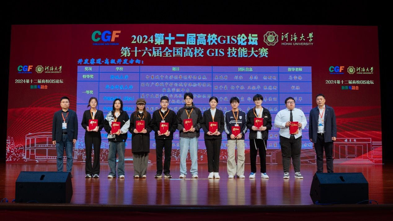 2024年11月1日,第十六届全国高校GIS技能大赛落下帷幕,今年会谢忠教授团队的邱芹军老师和陶留锋老师指导的研究生李子旋、周宇宽、李佳丽、郑诗语四人组成的团队发挥出色,其作品荣获赛事一等奖。