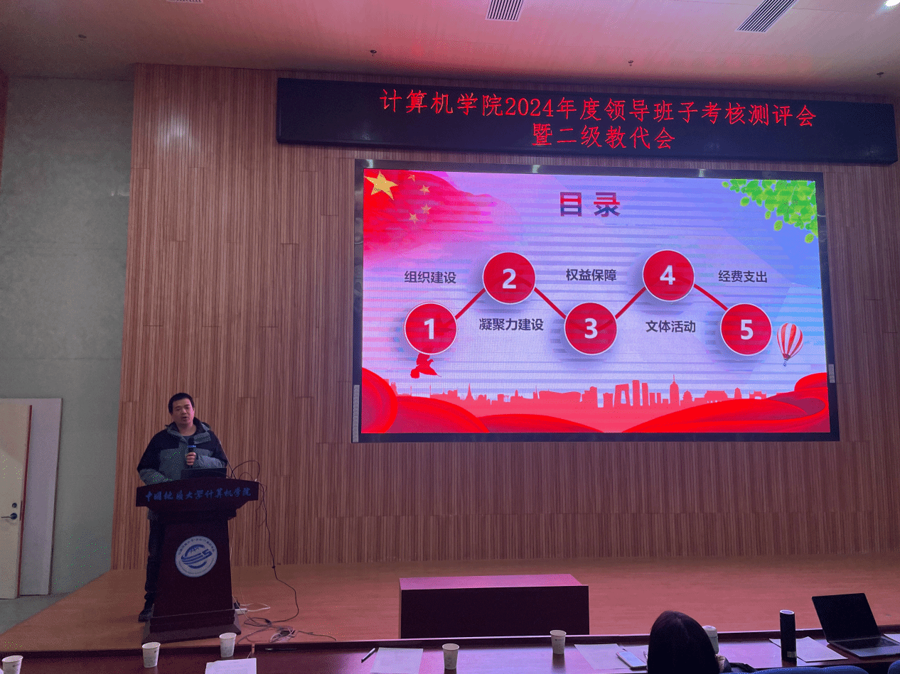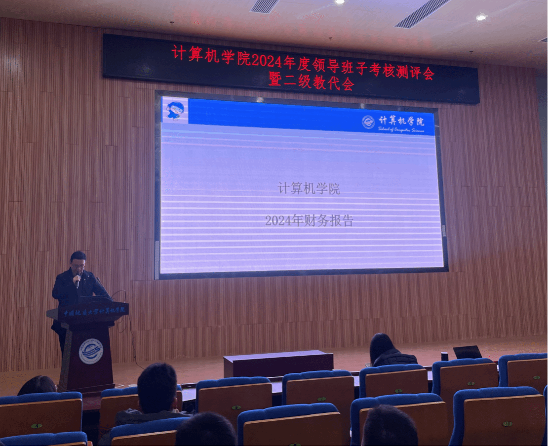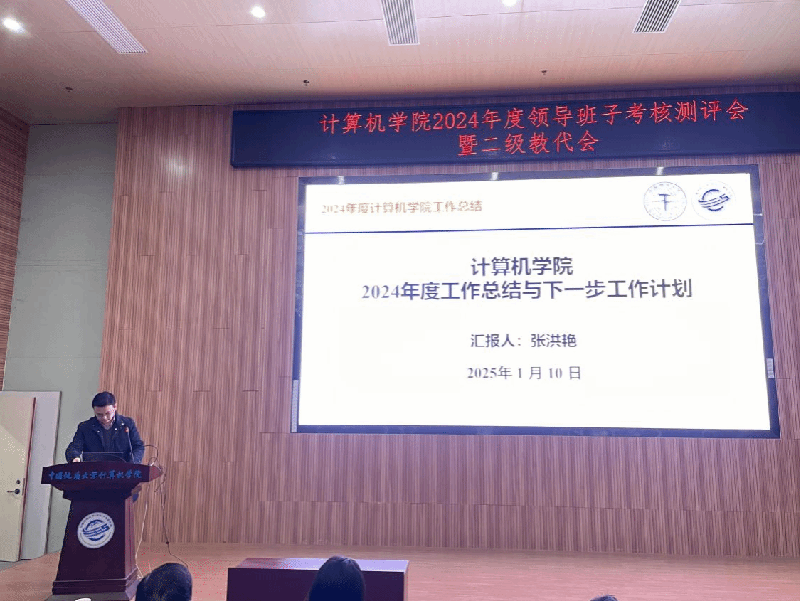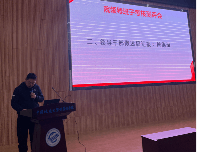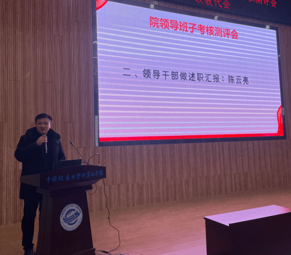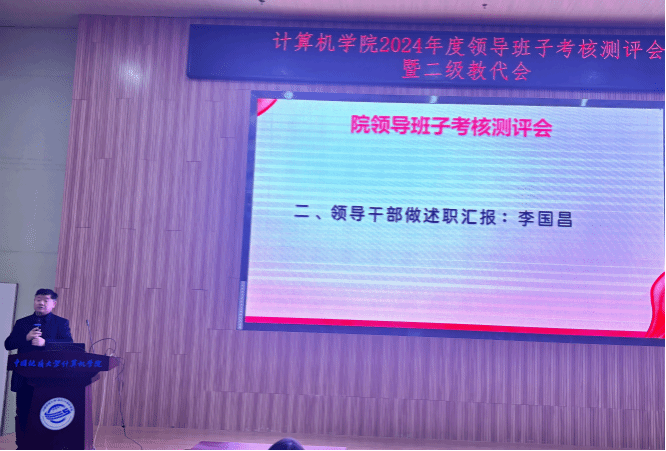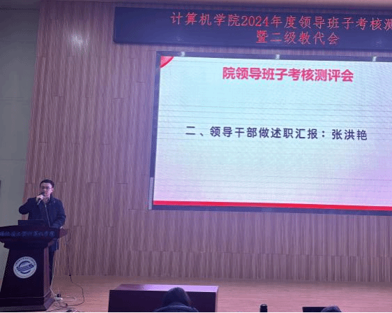 张洪艳院长代表院领导班子述职述廉。2024年,今年会体育官网领导班子旗帜鲜明讲政治,不折不扣不抓落实,以“提质增效年”为主题,团结协作、务实创新、担当作为,继续带领全院师生抓发展、保平安、守规矩,推动学院各项事业取得明显成效。未来将进一步落实学院“十四五”事业发展各项任务,协同推进和落实一流计算机学科建设计划,完善体制机制,抢抓人工智能和计算机基础学科发展机遇,坚持问题导向和目标导向,全面贯彻落实学校《关于进一步深化改革 扎实推进教育强国建设地大实践的行动方案》各项任务。