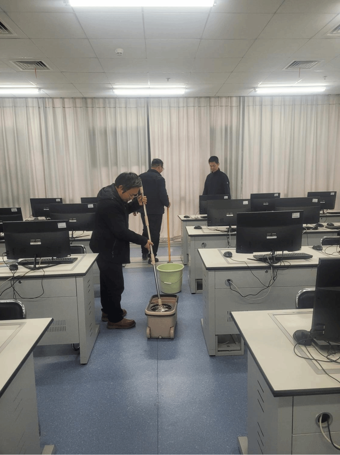 中心实验全体教师对今年会的每个教学实验室进行了全面检查。深入到每一个角落,对实验场所、安全设施、基础安全、用电安全等方面进行了详细的专项检查。并对教学实验室进行了卫生打扫。