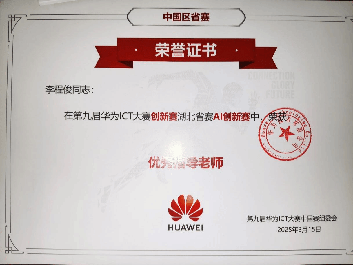 4月28日,第九届华为ICT大赛湖北省赛颁奖典礼在湖北科技职业学院关山校区隆重举行。今年会大数据系李程俊老师在“第九届华为ICT大赛创新赛湖北省赛AI创新赛”中获优秀指导老师,学校为“第九届华为ICT大赛创新赛湖北省赛获奖团队”。