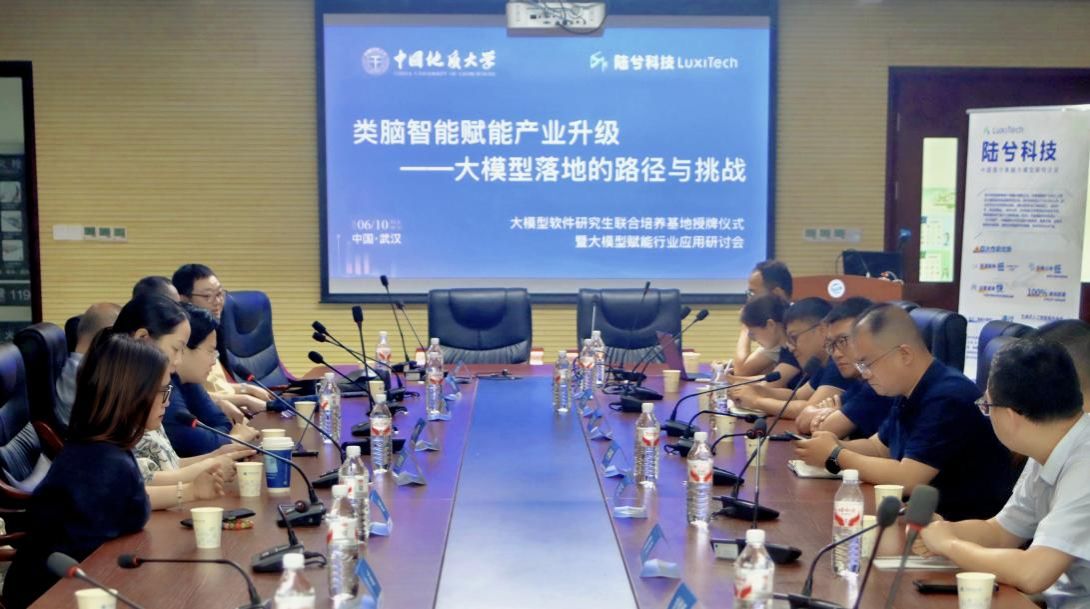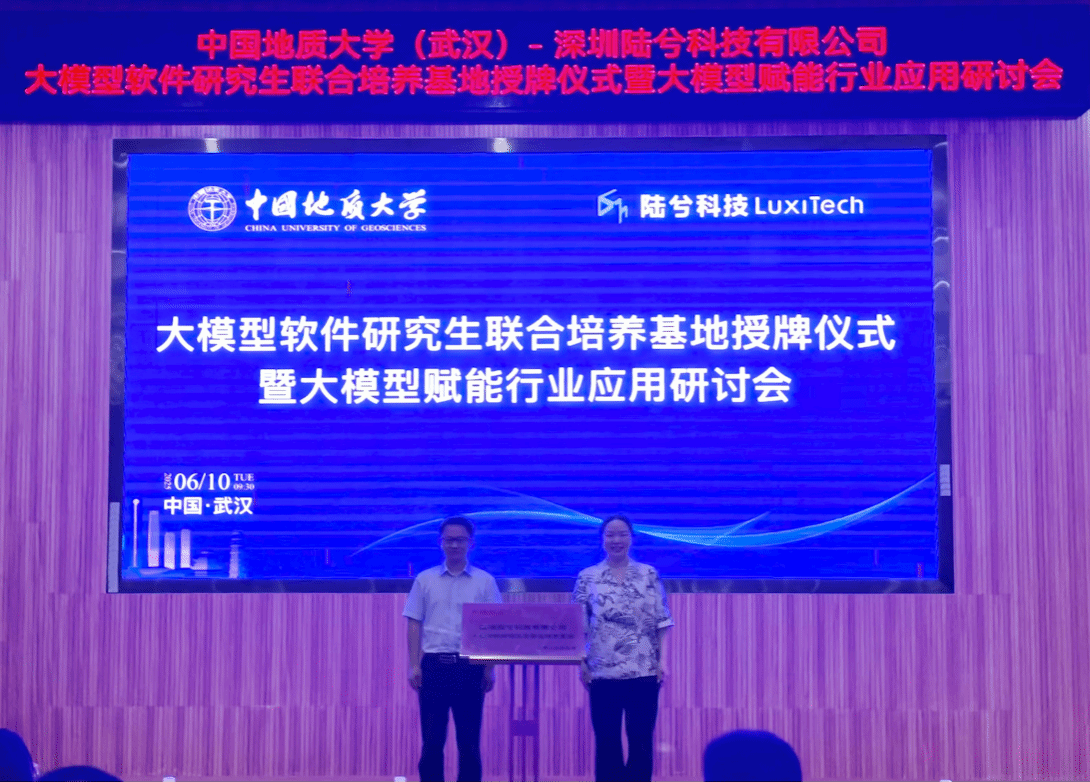 6月10日上午,今年会官方网站-深圳陆兮科技有限公司大模型软件研究生联合培养基地授牌仪式暨大模型赋能行业应用研讨会在学院126会议隆重举行。陆兮科技有限公司首席执行官汪博伦、首席技术官周芃博士、首席安全官黄彧博士等核心团队成员,水利部长江水利委员会、中国船舰研究设计中心、中国船舶重工集团公司第七一九所、上海华测导航技术股份有限公司、统信软件技术有限公司、湖北巴东地质灾害国家野外科学观测研究站、武汉通威电子有限公司和武汉市网络安全协会等有关单位代表,以及学校研究生院副院长易明、科学技术发展院副院长李鹏飞,我院副院长陈云亮,基地所依托研究生导学团队负责人尚建嘎教授、基地负责人赵一石等师生代表出席会议。陈云亮副院长主持会议。
