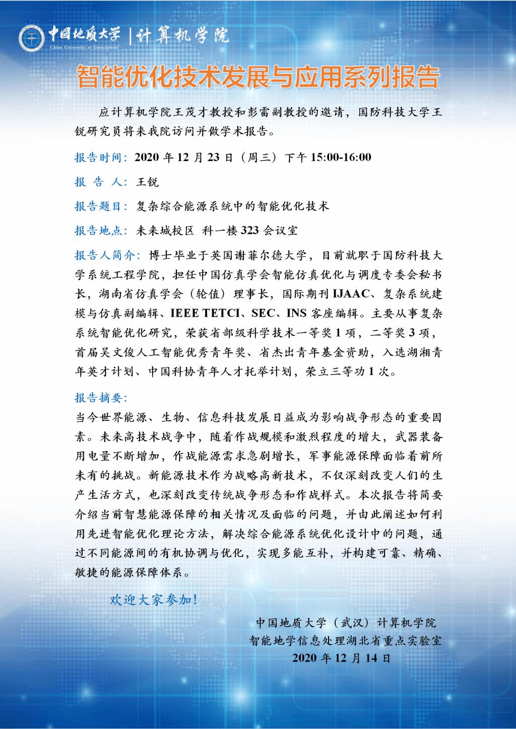 学术报告:智能优化技术发展与应用系列报告
