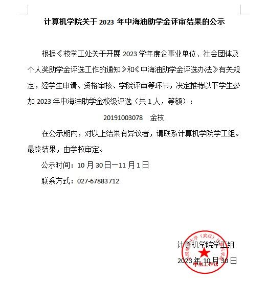 今年会体育官网关于2023年中海油助学金评审结果的公示