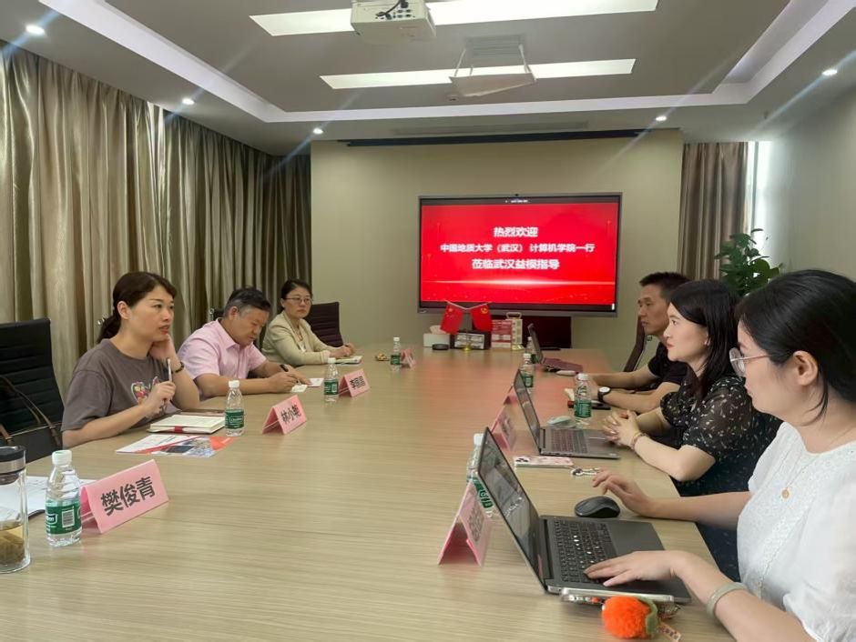 为深入落实高校毕业生就业工作,全面深化校企合作、供需对接,7月23日下午,学院党委书记李国昌、党委副书记林小艳、教师代表朱静和樊俊青一行四人前往武汉益模科技股份有限公司(以下简称“益模科技”)访企拓岗,并开展专题交流。