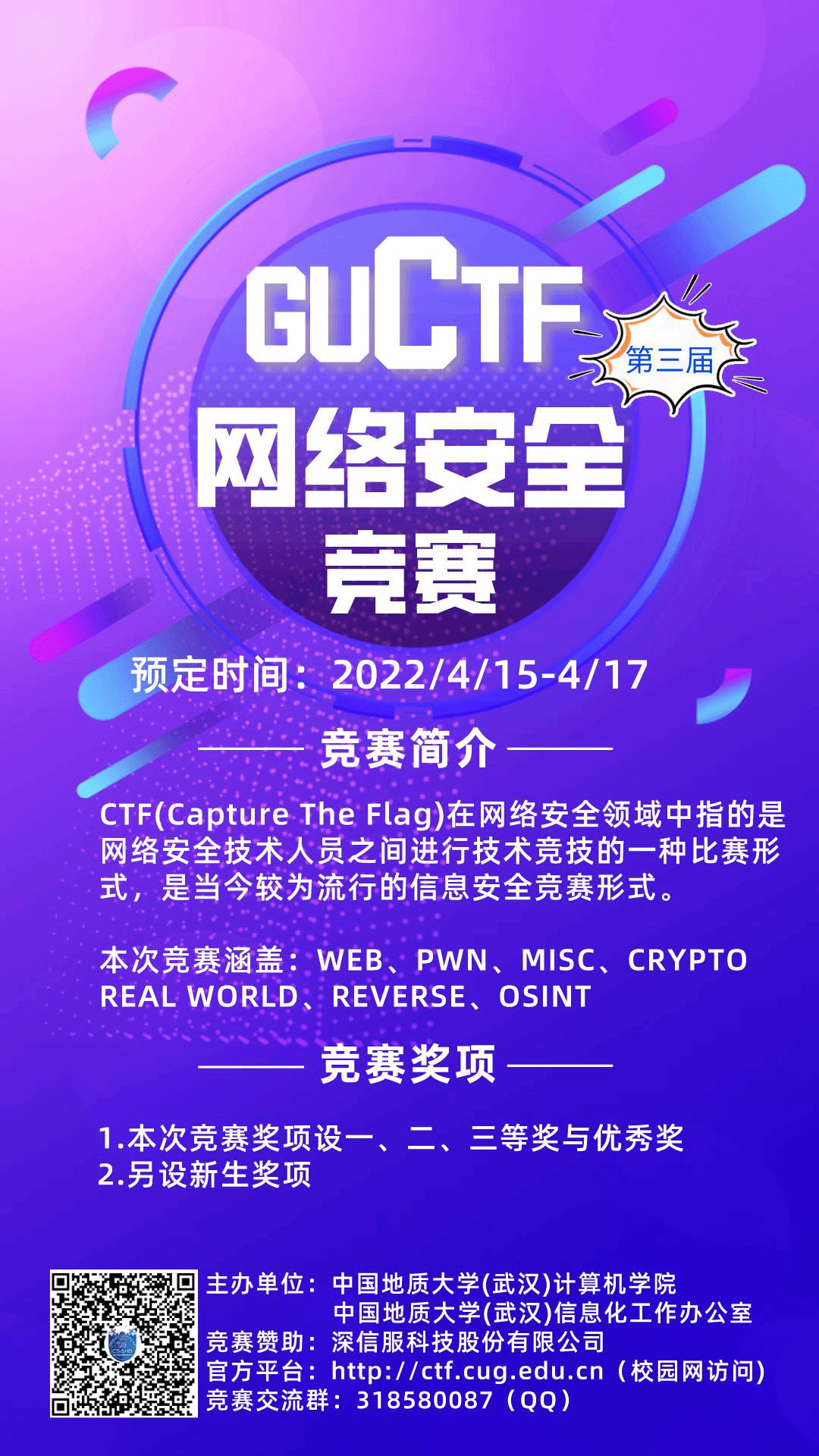 今年会体育官网高度重视、积极组织,在信息化工作办公室的大力支持下,由深信服科技有限公司提供赞助,第三届CTF竞赛的参赛规模和赛事流程将进行提升和改进,旨在选拔优秀学生,并将其组建成网络安全协会核心技术梯队,积极参与校园网络安全防护,总结网络安全实战经验,培养高水平网络安全人才。