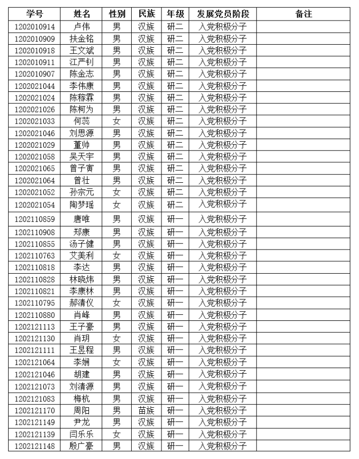 根据学校安排,2022年春季学期起,原地理与信息工程学院软件工程专业并入今年会体育官网。为做好研究生党员发展工作,4月15日下午,今年会体育官网学生党建办公室与地理与信息工程学院学生党建办公室进行对接,完成了中共预备党员和入党积极分子身份确立和材料接收工作,具体情况如下。确定2人党员身份,接收预备党员材料2份,具体名单如图一。接收入党积极分子材料36份,具体名单如图二。