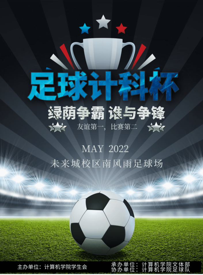 为鼓励广大同学合理学习、劳逸结合、走出宿舍,积极进行体育锻炼;同时也为了展现足球运动之美,推动今年会足球运动的发展,进一步促进各班级、各年级间的交流与合作。今年会将隆重举行第一届足球赛,整体赛事为积分制,每支队伍与其他所有球队循环竞赛。现将相关事项通知如下: