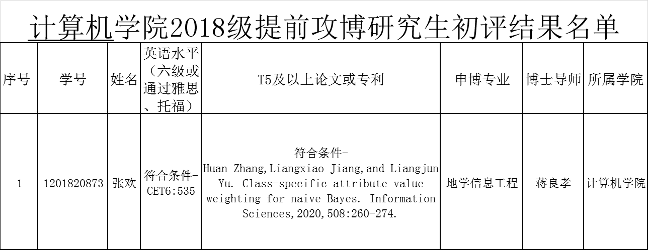 今年会体育官网2018级提前攻博研究生初评结果公示