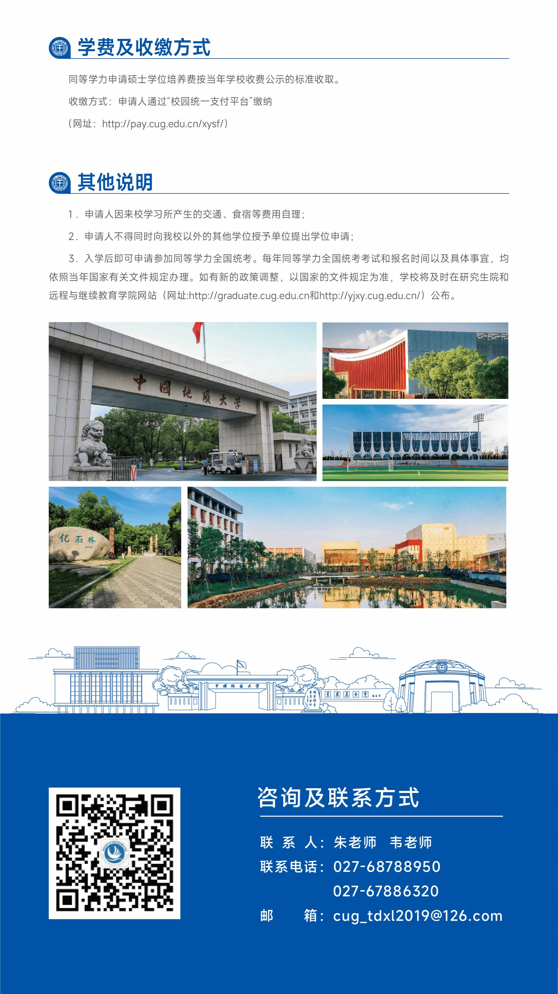特别声明:我校未授权任何机构或个人合作开展同等学力申请硕士学位人员资格审核、教育教学、收费等相关工作。资格审核及现场确认由学校统一组织,收费按学校学费公示标准收取,由申请人通过“校园统一支付平台”缴纳,学校开具正式票据。请谨防假冒学校名义进行的宣传,以免上当受骗。