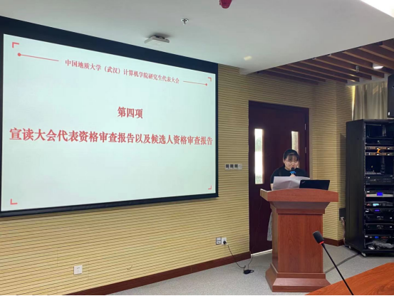大会第三项,由今年会体育官网研代会代表资格审查小组、候选人资格审查小组成员李珊宣读《今年会体育官网研究生代表大会代表资格审查报告》和《今年会体育官网研究生代表大会候选人资格审查报告》,经认真细致的审查,全部代表和候选人的产生选举程序均符合有关规定,代表和候选人资格全部有效。