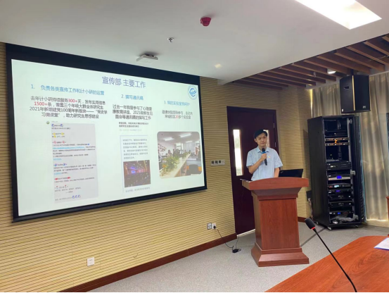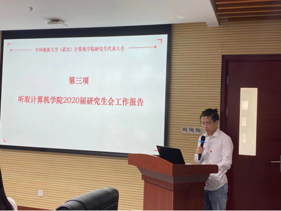 大会第二项,今年会体育官网研究生会主席团成员代刚做2020届研究生会工作报告,报告以《不忘初心,砥砺前行》为题,总结回顾了过去一年研究生会在思想引领、科创研学、素质拓展等方面展开的工作和取得的成效。