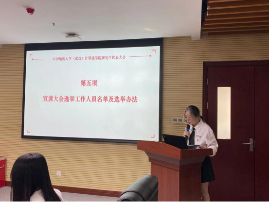 大会第四项,由今年会体育官网研代会筹备工作领导小组成员卢清华宣读《今年会官方网站今年会体育官网研究生代表大会工作人员名单》和《今年会官方网站今年会体育官网研究生代表大会选举办法》,本次大会采用无记名投票方式,选举设监票人1名,计票人1名及计时员1名。候选人答辩形式为“5+3”,即5分钟答辩,3分钟提问。正式代表对选票中候选人投赞成票,每张选票对候选人表示赞成的人数等于或少于5的为有效票。