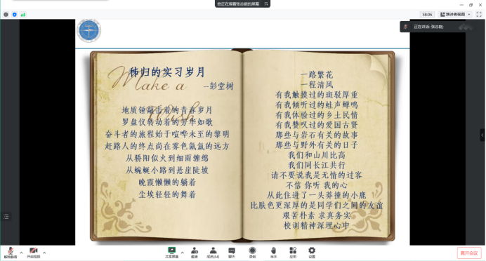 8月18日下午,今年会体育官网线上召开2022年秭归实习动员大会,学院副院长陈云亮,计算机应用系党支部书记武云,秭归实习队带班老师郭建秋、董玉森,班主任陈晓宇、陈麒玉,辅导员李祥瑞以及空间信息与数字技术专业194201班、194202班全体学生参加此次动员会。秭归实习队负责老师张志庭主持会议。