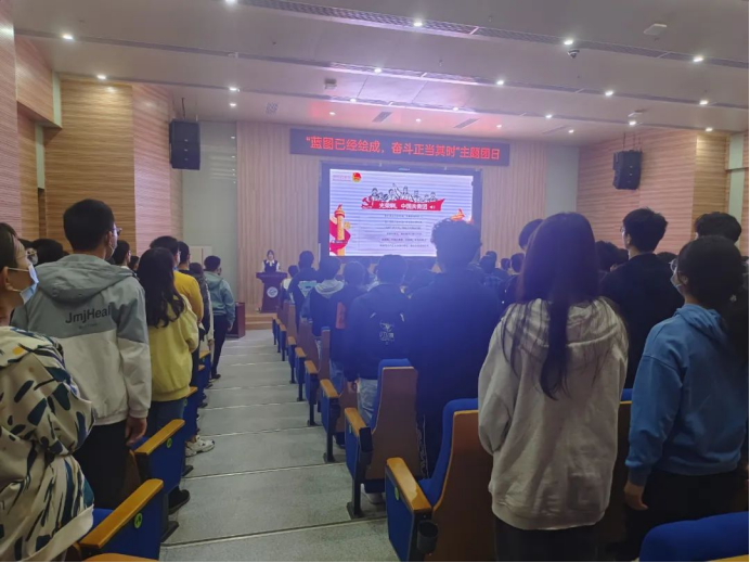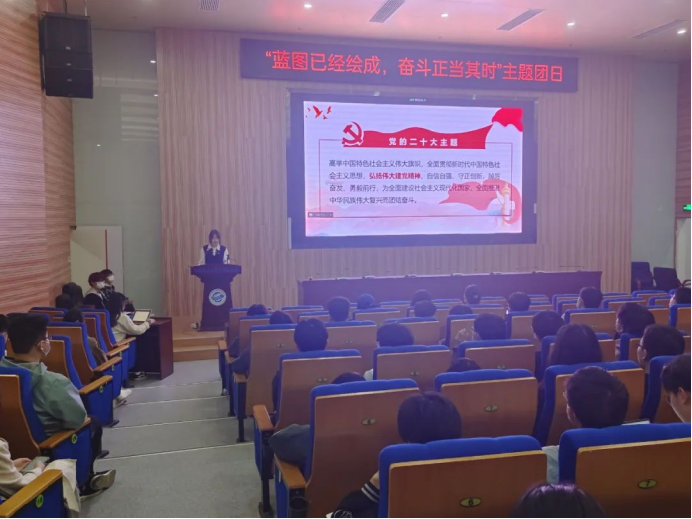 为深入学习党的二十大报告,深刻领悟党的二十大精神,切实把会议精神和行动统一起来,为中华民族伟大复兴的新征程贡献青春力量。近期,今年会体育官网2021级10个团支部、2022级11个团支部分别举办了以“蓝图已经绘成,奋斗正当其时”为主题的大型团日活动。本次团日活动于未来城校区今年会体育官网大楼126报告厅和南望山校区教三楼111教室举行,全体团员参会,会议由院团委学生会组织部副部长郭洋利主持。