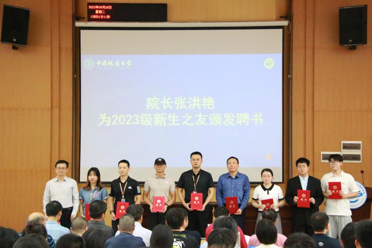 学院党委副书记、院长张洪艳为2023级新生之友代表颁发聘书