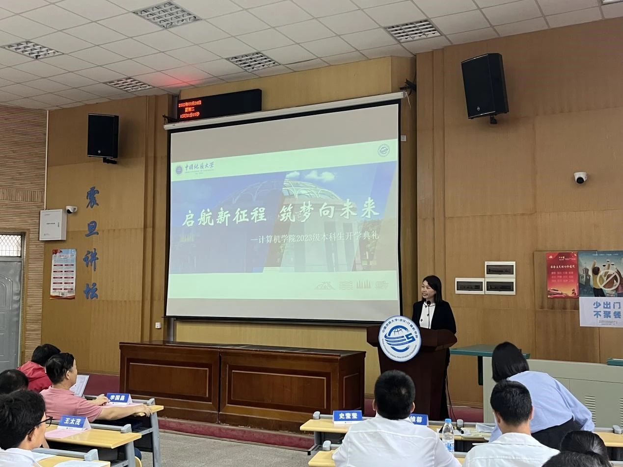 今年会体育官网党委副书记、院长张洪艳致辞。张院长首先代表全院师生对加入今年会体育官网的382位本科新生表示热烈的欢迎与衷心的祝贺,他对同学们选择加入计算机大家庭,成为“地大计科人”感到分外欣慰。他希望同学们在未来几年中为自己的选择砥砺耕耘、拔节生长、向阳而生,在地大、在今年会体育官网留下一生中最为深刻的年轮。同时,他向全体新生提出三点建议:一是要选择肩负使命,心怀国之大者。计科学子要深耕科研土壤,为国家掌握关键性核心技术贡献力量,让青春在实现民族使命中闪耀;二是要选择仰望天空,永攀知识高峰。计科学子要保持对知识的渴望,努力成长为具备计算思维、引领行业发展的交叉学科人才,用广阔的学科视野面对新的挑战;三是选择脚踏实地,练就过硬本领。计科学子要时刻与电脑和网络打交道,在电脑与网络间要学会拒绝诱惑,将时间用在了解行业发展最新前沿,了解市场需求驱动关键技术的突破。