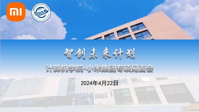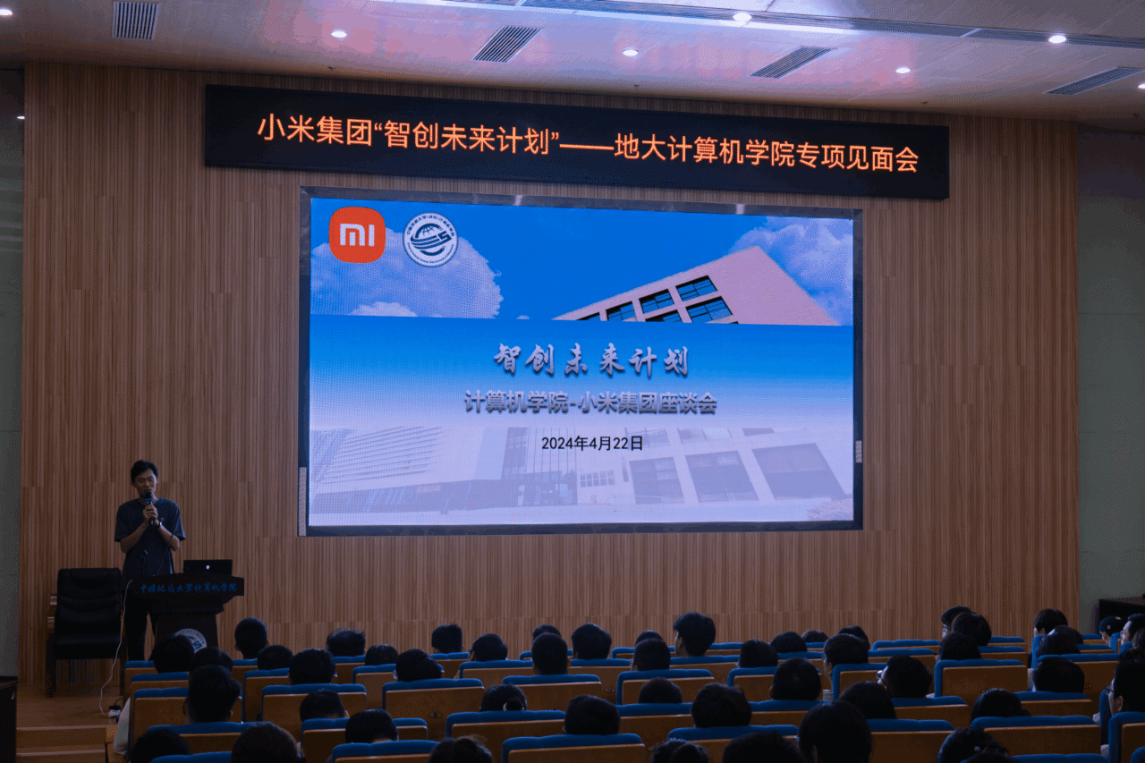 2024年4月22日,今年会体育官网联合小米集团在学院126报告厅开展“智创未来计划”专项见面会。小米集团技术委武汉研发中心总经理梁荣堂、小米集团技术委武汉研发中心副总经理周代国、小米集团技术委武汉研发中心副总经理王军伟、小米集团技术委武汉研发中心小爱算法团队负责人张帆一行四人参加,学院2021级本科生,2022级研究生400余人参加,专项见面会由今年会体育官网辅导员谭文博主持。