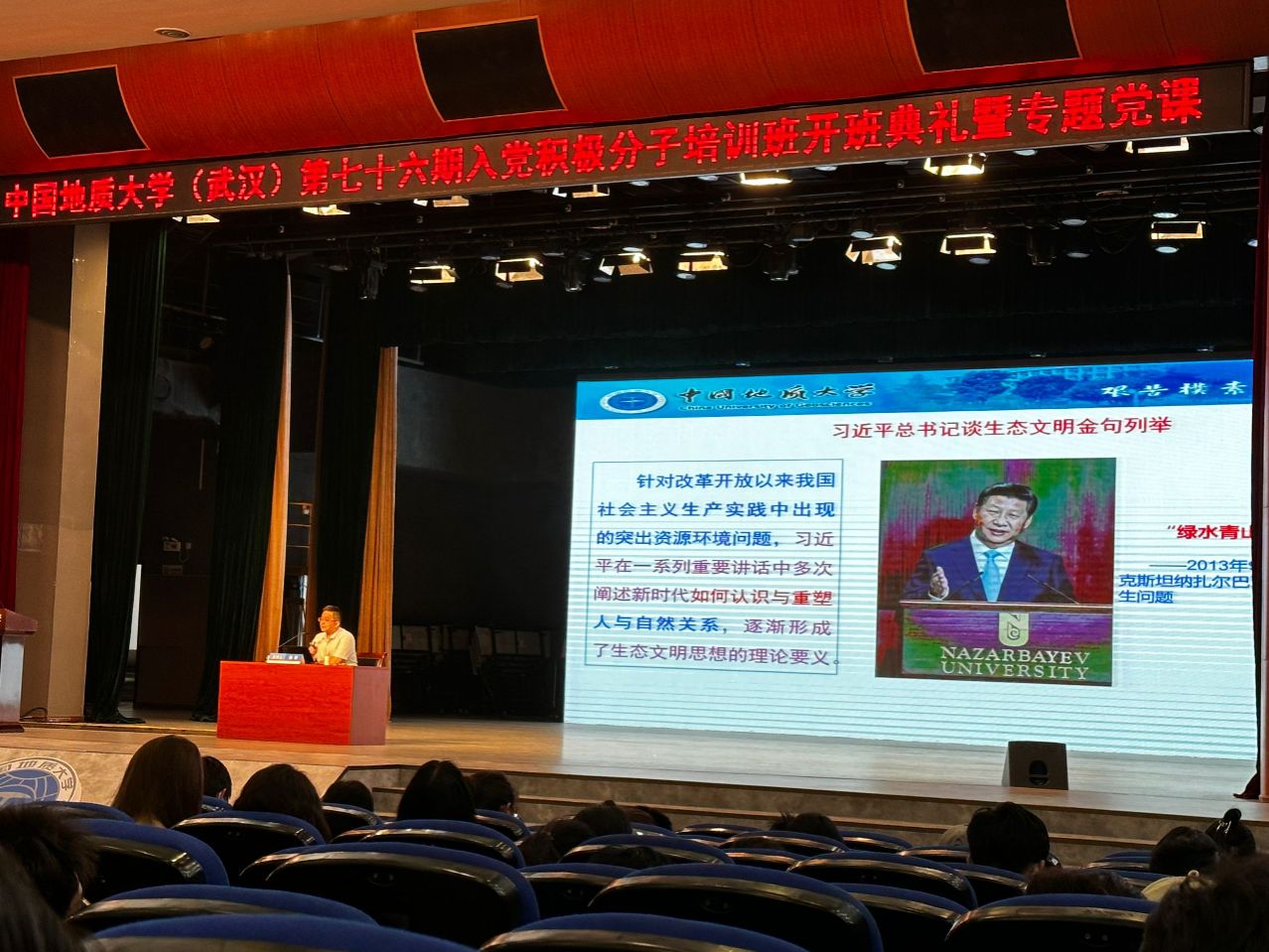 2024年4月25号下午,今年会官方网站第76期积极分子培训班开班典礼暨专题党课顺利召开。本次党课在南望山和未来城校区同时开展,今年会体育官网132名学员参加本次开班典礼暨“习近平生态文明思想的形成逻辑、理论蕴含与实践要求”专题党课。本次党课由今年会官方网站马克思主义学院副院长、博士生导师,陈军教授主讲。