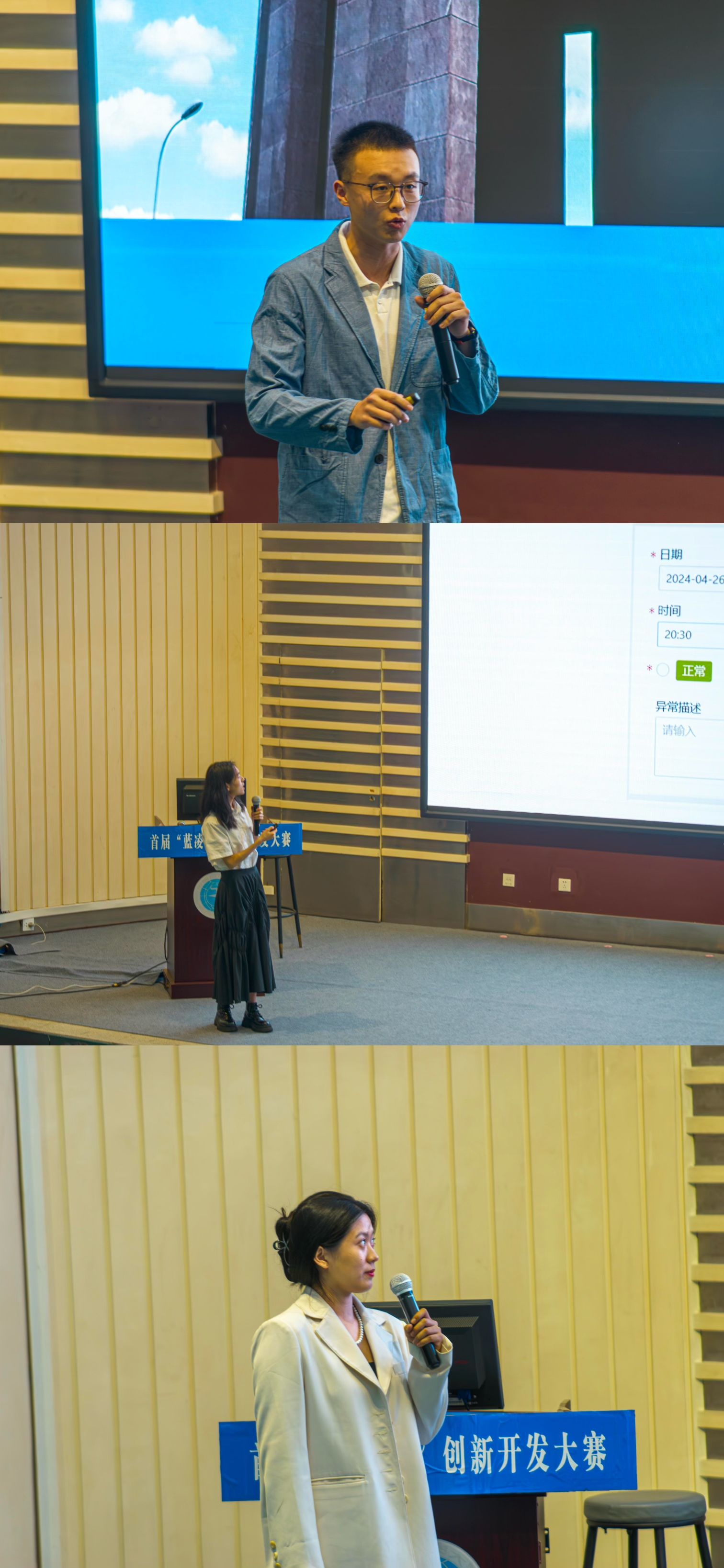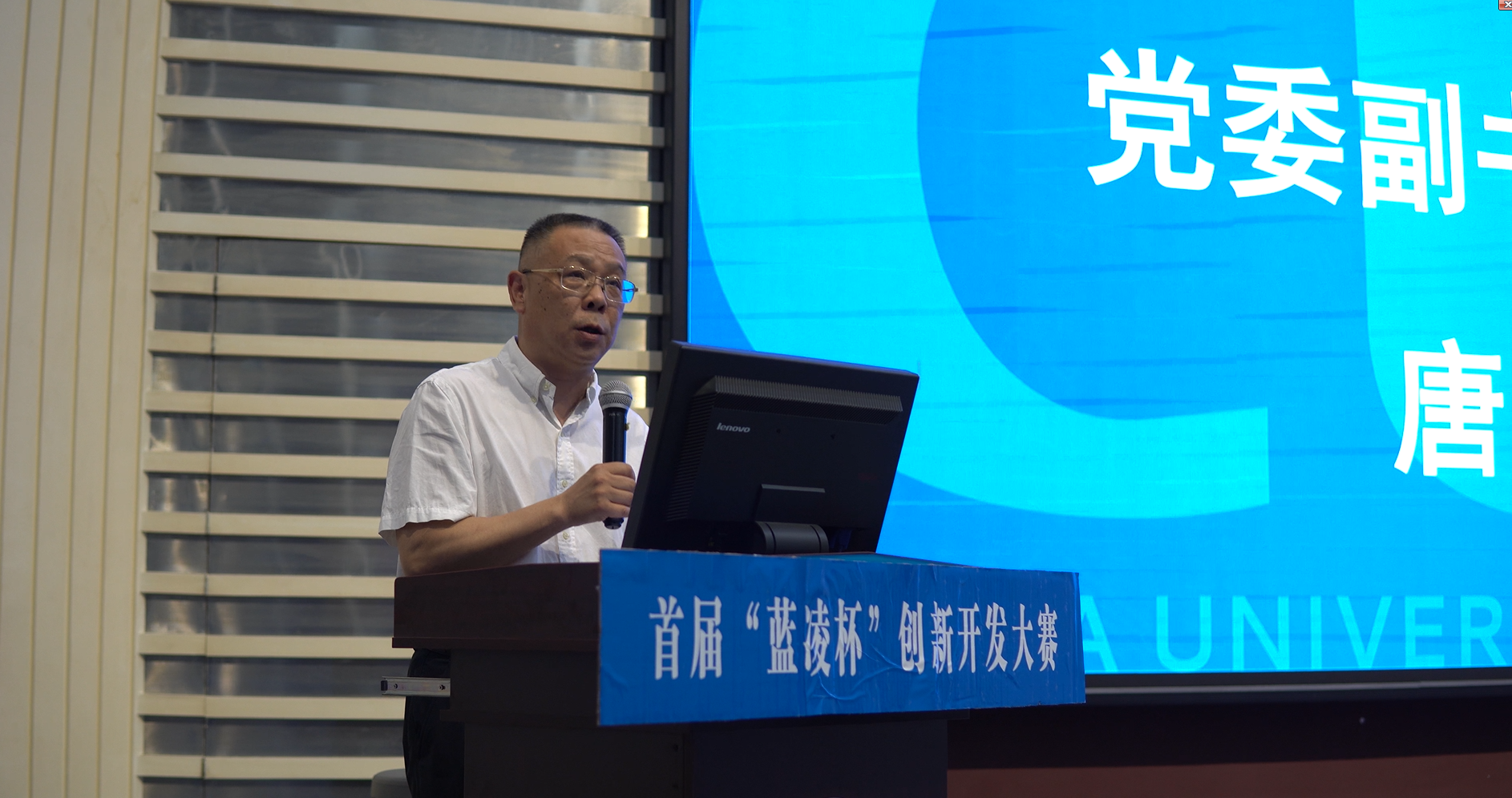 何春炎致辞。他回顾了“蓝凌杯”创新开发大赛筹备与举办的历程,高度赞扬了参赛学生取得的进步与成绩,向所有参加比赛、收获成长与经验的选手们表达祝贺,并对他们的未来发展寄予厚望,期待能和同学们在蓝凌相会。