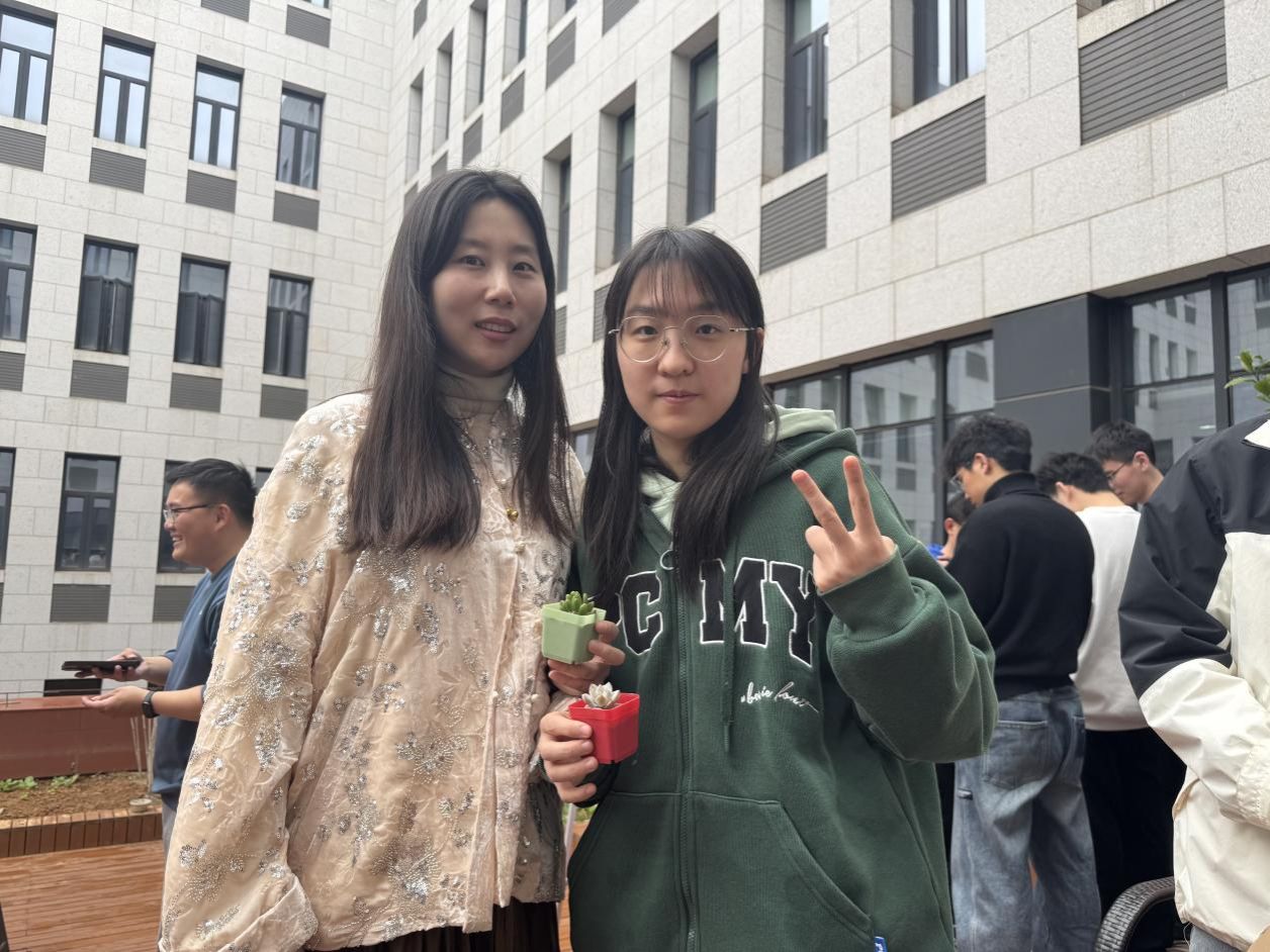 师生们积极参与趣味答题活动,现场气氛热烈。题目涵盖植物的种类、生长习性、生态价值等多个方面,既有简单的科普问题,也有专业知识的探讨,大家通过知识竞答,领取自己心仪的绿植,一株株翠绿欲滴,生机勃勃的绿植瞬间成为同学们的“新宠”。同学们手持绿植开心合影,定格收获的喜悦。