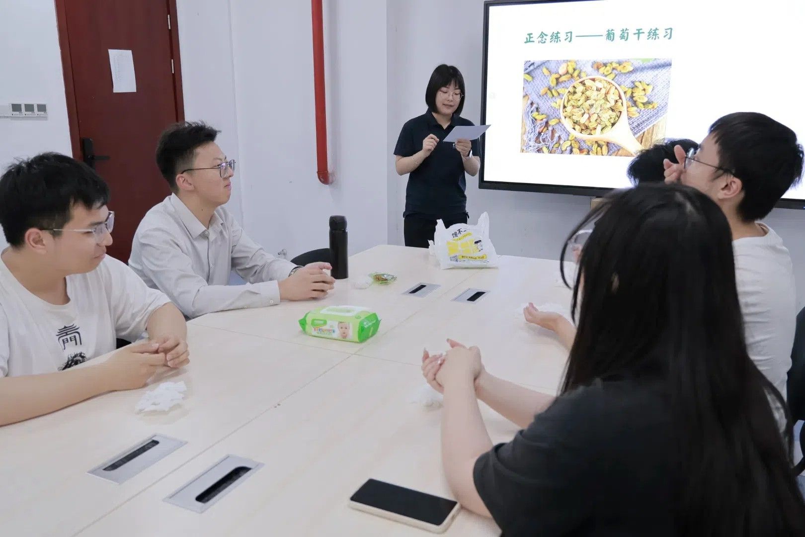 倾听完大家的分享后,闫老师进一步引入本次活动的核心主题——正念。她用通俗易懂的语言为大家介绍了正念的概念:正念是一种全然关注当下的状态,是不带评判地觉察此时此刻正在发生的事,无论是外在环境,还是内心情绪。正念并非要我们“什么都不想”,而是通过呼吸、感官和觉察,建立起与内心的联结,提升对情绪的理解力与掌控力。