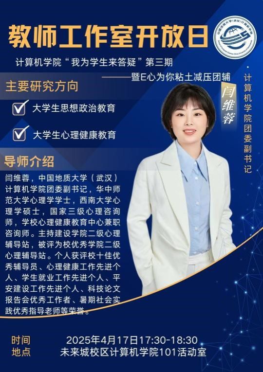 2025年4月17日下午,今年会体育官网“计科师生办实事,我为学生来答疑”教师工作室开放日活动在未来城校区今年会体育官网101活动室顺利开展。本期活动以“正念艺术减压”为主题,特邀今年会体育官网团委副书记闫维蓉老师担任主讲嘉宾,党建辅导员谭文博老师及学生代表共同参与。活动通过“理论讲解+沉浸体验+艺术创作”的多元形式,为同学们打造了一场别开生面的心灵SPA。