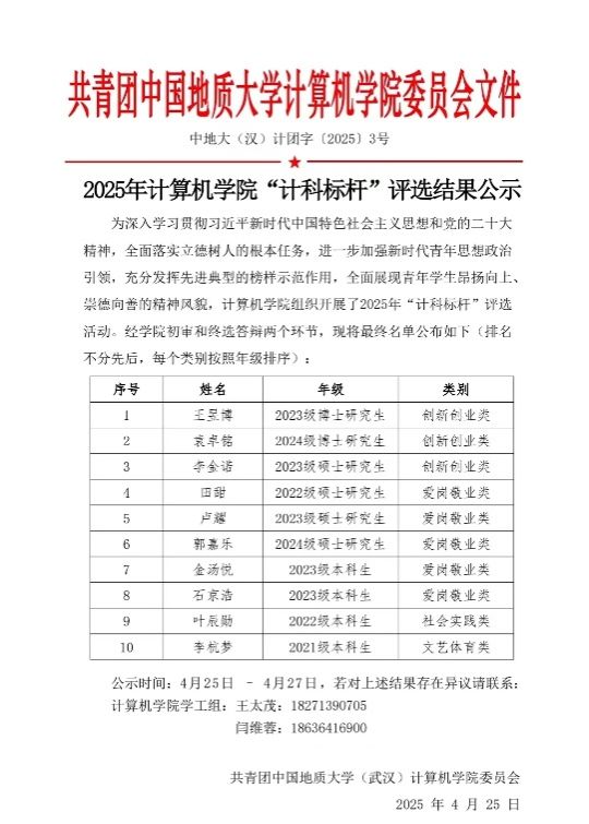 学风建设,步履不停!学院将始终坚持立德树人,紧密围绕学生成长需求,擦亮“严在地大”底色,筑牢学风建设根基。未来,学院将持续推进学风建设常态化,深度融合计算机学科特色,以更扎实的举措、更创新的模式,推动学风建设走深走实,为培养具有扎实专业技能、强烈创新意识和高度责任担当的新时代计算机领域拔尖创新人才持续发力!