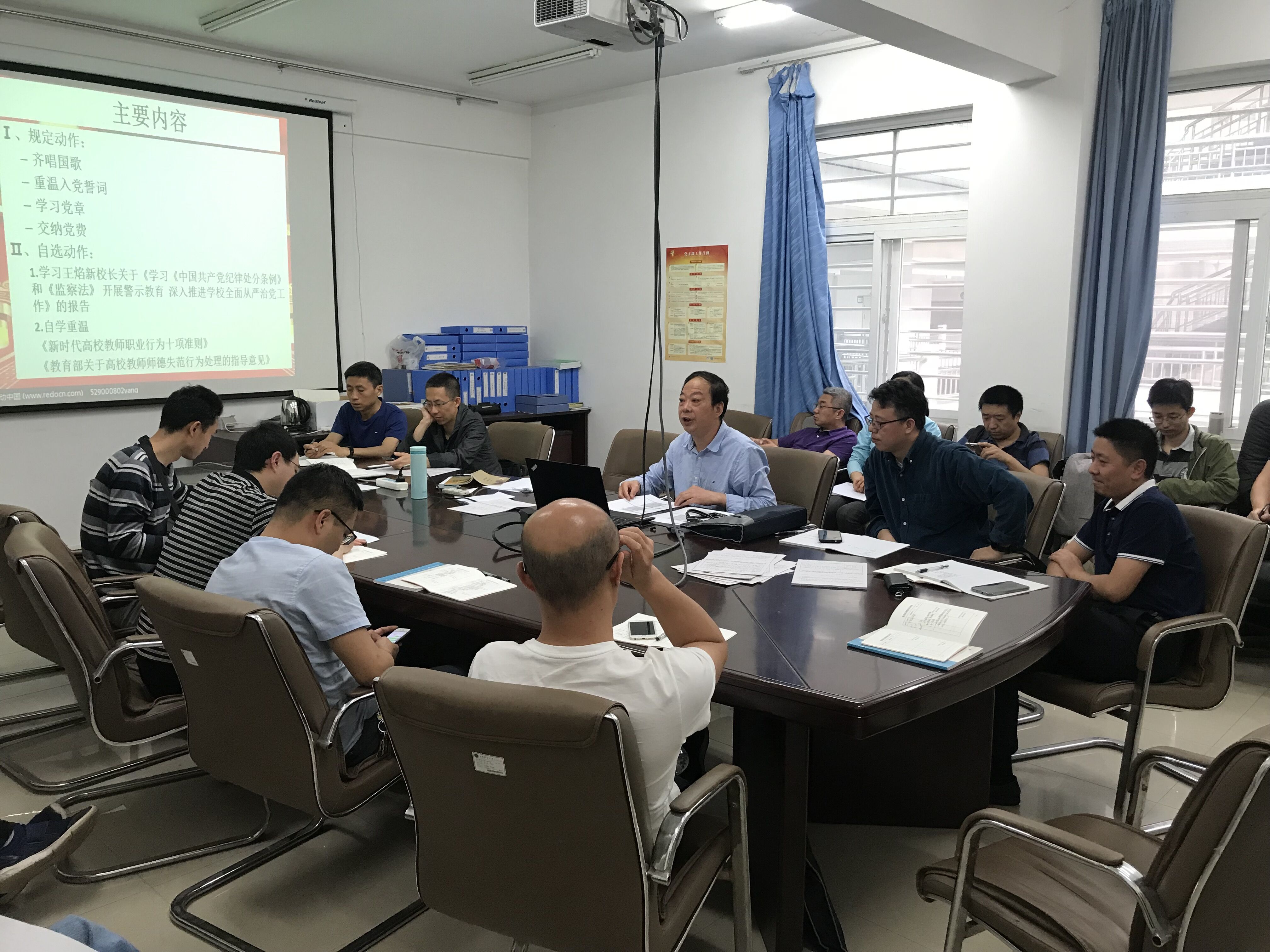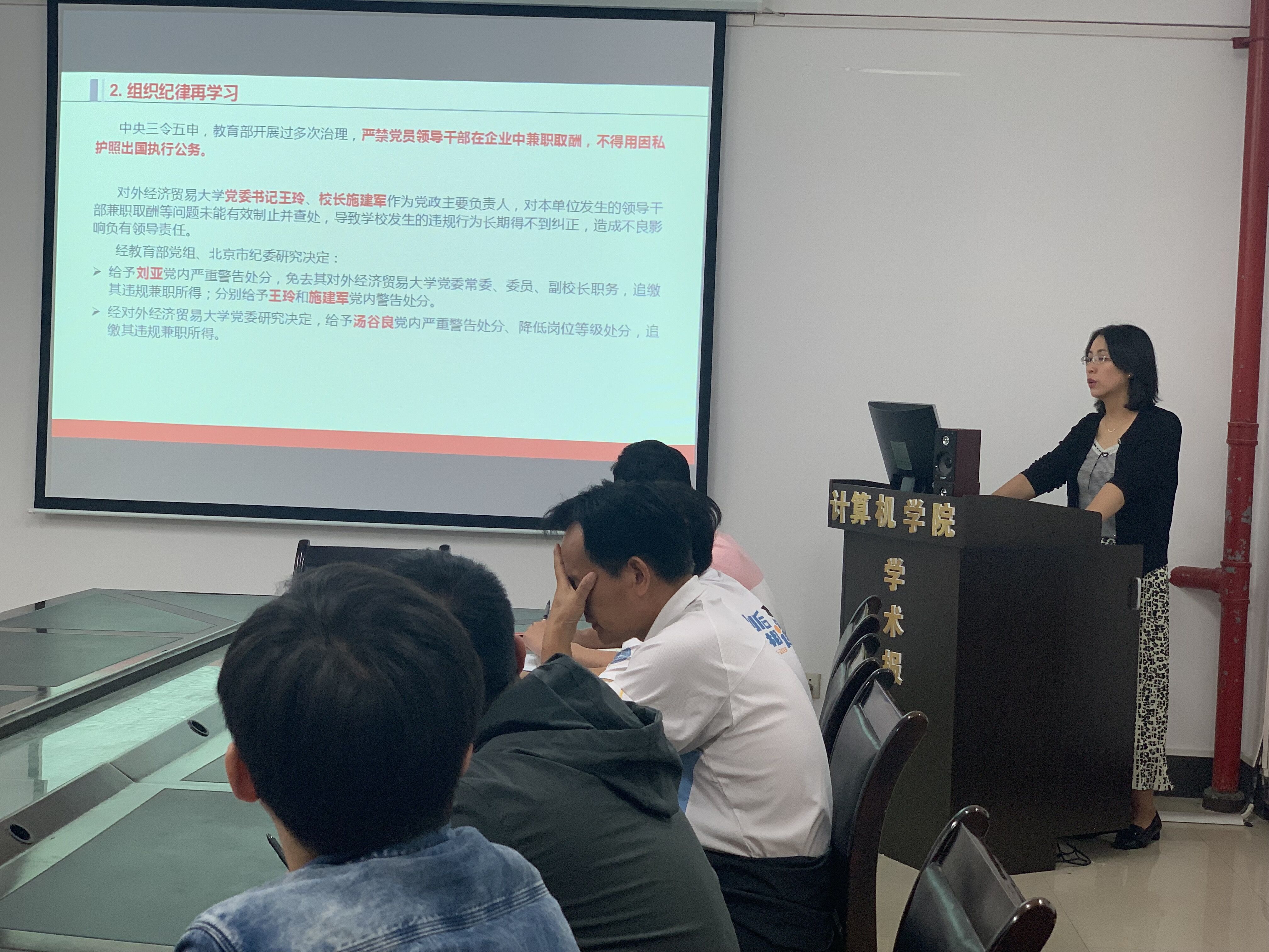 2019年5月30日下午,各院领导利用主题党日的机会分别赴各联系支部讲授廉政党课,学习《中国共产党纪律处分条例》《中华人民共和国监察法》。通过学习条例,研读案例,教育大家学法懂法,知法守法,深入推进学校从严治党向纵深发展,压实责任,强化担当。