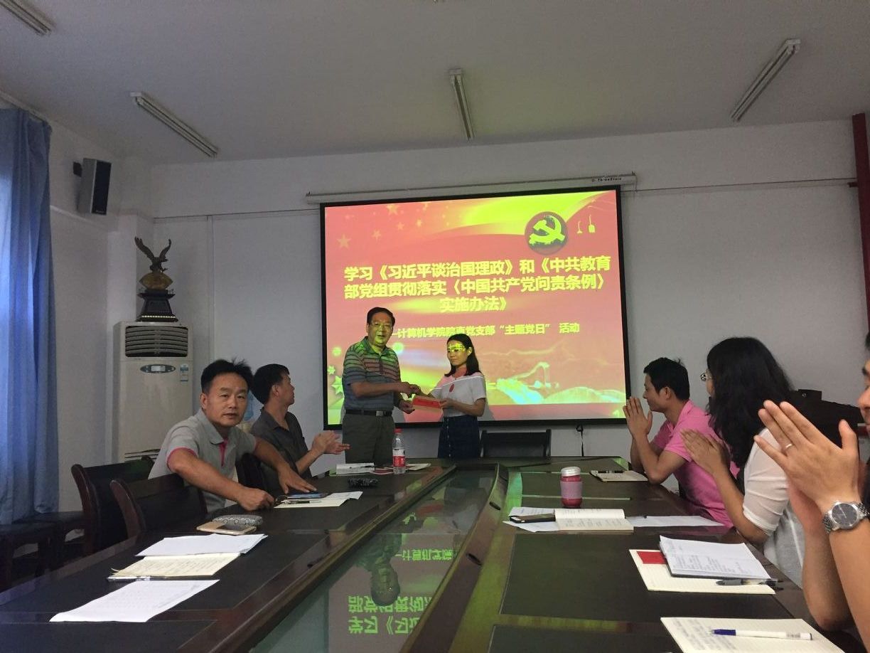 随后院党委书记吕军同志主持了院直党支部“三个一工程”帮扶困难学生的捐赠仪式。“三个一工程”为今年会体育官网党委开展的特色活动,主要内容为帮扶一个家庭困难的同学、帮助一个学习困难的同学、帮助一个同学开展科研。今年会优秀研究生曾多次获得各类奖学金且担任过学生党支部书记的廉颖同学去年母亲患病去世花费了巨额的费用。这给同时有三个孩子上学的家庭带去了沉重的负担。院直支部在支部内进行了倡议和动员,支部所有党员甚至办公室的非党员梁媛同志都对廉颖进行了捐款。在捐赠仪式上,当吕书记把寄托了大家鼓励和爱心的捐款交到廉颖同学手上的时候,廉颖激动的深深的鞠了一躬,她表示“这是她收到的最好的生日礼物,她一定会好好做人,努力学习,以实际行动回报母院”。