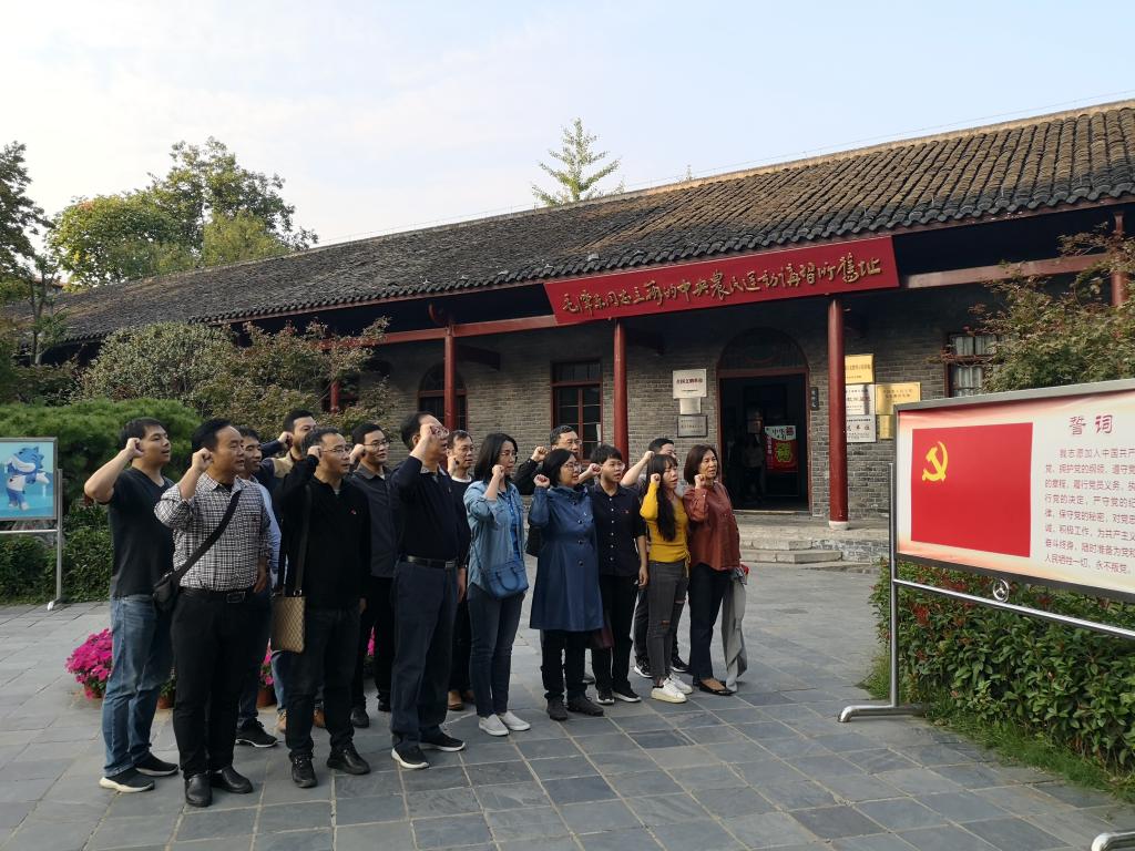 在中共五大会址前,同志们都举起了右手,在院党委书记吕军同志的带领下,面向党旗进行了庄严的宣誓,这也是大家对党的事业许下的最郑重承诺——践行共产党人的初心和使命,落实立德树人根本任务、为建设一流的计算机学科不懈奋斗!