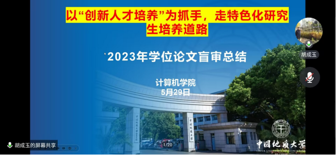 胡成玉以2023年研究生学位论文盲审总结为切入点,详细介绍了2023年春季拟申请学位的各类研究生分布情况,阐述了当前今年会硕士生培养的规模与类别,进而细致讲解了今年硕士学位论文盲审规则,分析并总结了截止5月9日的硕士学位论文盲审结果,最后,胡成玉副院长总结了当前论文盲审不通过的5点主要原因,提出了3条学院拟采取的提升研究生培养质量的相关实施办法,号召全体导师要严把质量关、重视科研训练,切实提升研究生学位论文质量。