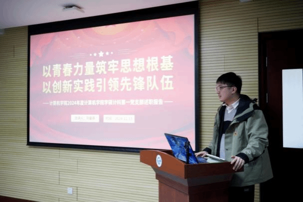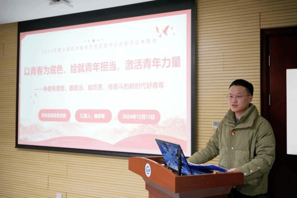 7位教职工党支部书记、13位学生党支部书记依次进行述职汇报。汇报内容紧紧围绕实现“七个有力”基层党支部建设要求和党支部书记述职评议考核要求,从2024年度重点任务完成情况、存在的突出问题和下一步工作打算等方面进行汇报。