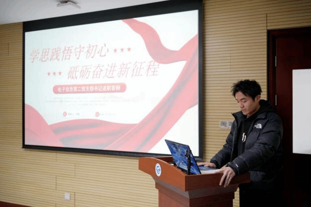研究生专硕第六党支部书记向晨风谈到:今天很荣幸参加学院党支部书记述职大会,很荣幸上台汇报工作。这不仅是工作汇报,更是向其他党支部书记学习的宝贵机会。教职工支部工作部署有条不紊、成果丰硕。本科生、研二和研三支部百花齐放,各有建树。作为聆听者,我不断学习着他们的管理方法和成熟经验。虽然研一党支部因为成立时间较短,成果不够突出,但在学院党委的正确领导和全体支部成员的积极配合下,我们一定能有所成就。我们作为党支部书记,肩负着同学们的信任,应该切实担负起支部组织管理工作的责任。学院领导们的认可和夸奖是一种鞭策,期许和鼓励着我们带领党支部走向新的未来。