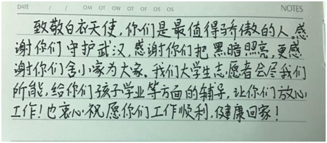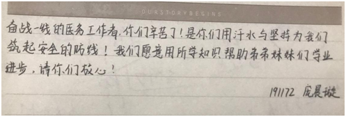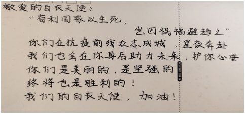 同时,志愿者们也通过手写寄语,表达了对医护人员的浓浓感激和祝福之情。
