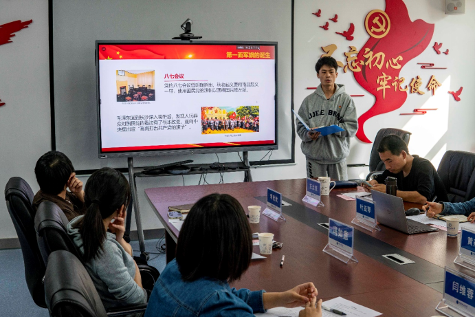 192192班团支部书记霍奥林以“南昌起义——铁血丹心铸军魂,八一精神谱新篇”为主题,结合当下讲述了起义前后国家的形势、南昌起义历史意义。