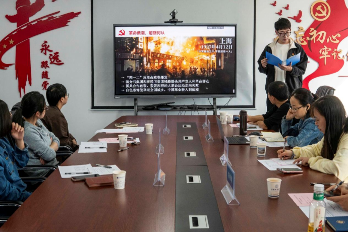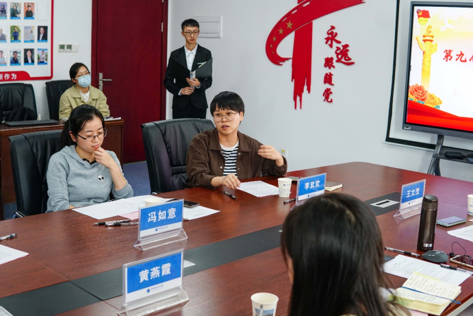 192202团支部书记高雷雨以“扎根在祖国青山绿水的‘金钉子’”为主题,讲述了殷鸿福院士的精神风貌和“金钉子”精神的内涵。