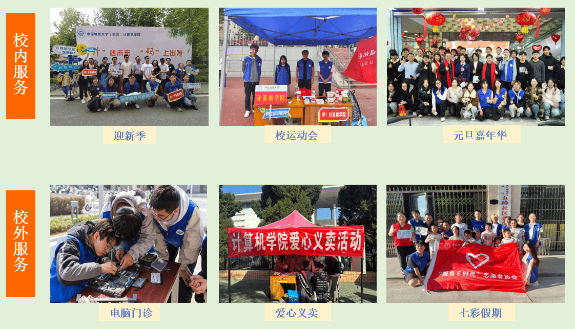20242025年度,协会组织开展志愿活动超30次,累计志愿时长达2500小时,志愿者超1000人次。协会在校内搭建育人平台,组建“计科E课堂”课程帮扶志愿者团队,开展17次答疑活动,辐射学生1000余人次;协助举办“金山杯”华中地区高校第十八届程序设计邀请赛暨中国地质大学第二十届程序设计大赛等大型活动。在校外建立计算机普惠性科普基地,开发“人工智能启蒙”“编程思维养成”等主题课程模块、创新暑期教育托管模式、开展电脑义诊等,在跨校合作中,单次活动最高联动志愿者150人;在社区服务中,累计服务孤寡老人28户、青少年120余名,传递志愿服务的温暖与力量。