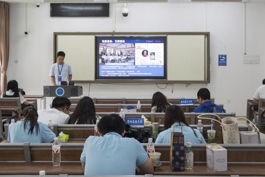今年会团委学生会组织部与会代表介绍了综事组、统计组、内务组三大职能部门的组织架构及各自工作目标,突出展现了学院团务工作的系统性与规范性。华中农业大学信息学院团委学生会与会代表全面介绍了学院团学组织架构与党建思政融合发展情况,重点围绕党性锤炼、支部建设、党员发展、理论学习等方面展开详细说明:通过与红色观影、志愿服务和参访实践,依托“党员故事先锋会”和导师指导践,引导支部建设常态化。武汉科技大学计算机科学与技术学院团委学生会与会代表从党团构造入手,介绍了时事案例分享大赛、团组织生活竞赛、团支书演讲比赛等特色活动,通过组织红安社会实践与敬老探访,推动党日活动与义务劳动深度结合。武汉理工大学计算机与人工智能学院团委学生会与会代表介绍了以金字塔结构为基础的组织体系与工作分层,并重点展示了“母校行”、“敬老院慰问”、“历史博物馆参访”、“公司参观”等假期社会实践项目,突出“以提供解决方案为核心”的导向,为今后优化机制提供思路与建议。