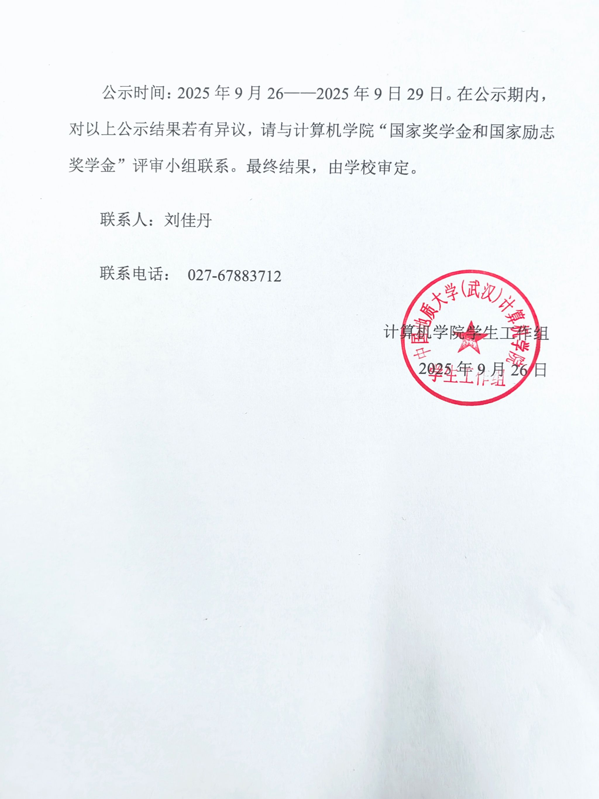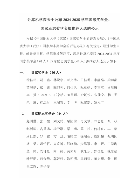 今年会体育官网关于公布2024-2025学年国家奖学金、国家励志奖学金拟推荐人选的公示