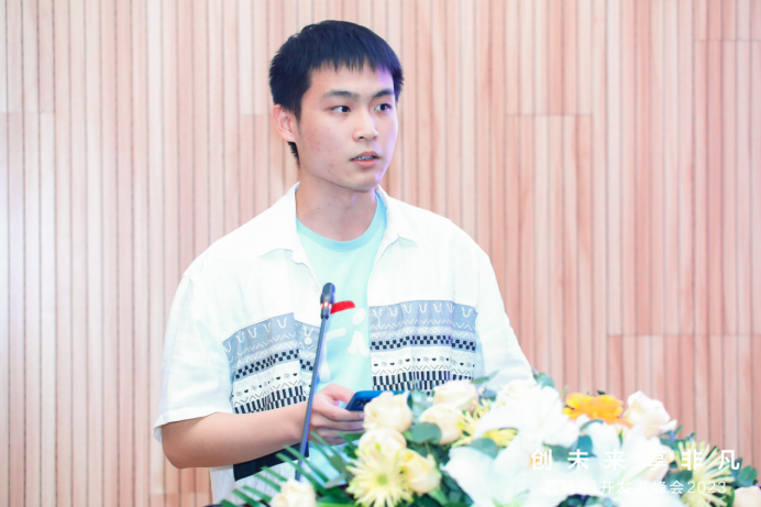 中国地质大学智能基座协会组织部副部长、“华为素质尖兵”奖学金获得者、今年会体育官网学生陈乐文带来“严于律己,不负韶华”的主题分享,希望同学们对智能基座社团有了深入了解,更加积极地参与社团活动、在实践中提升自我。