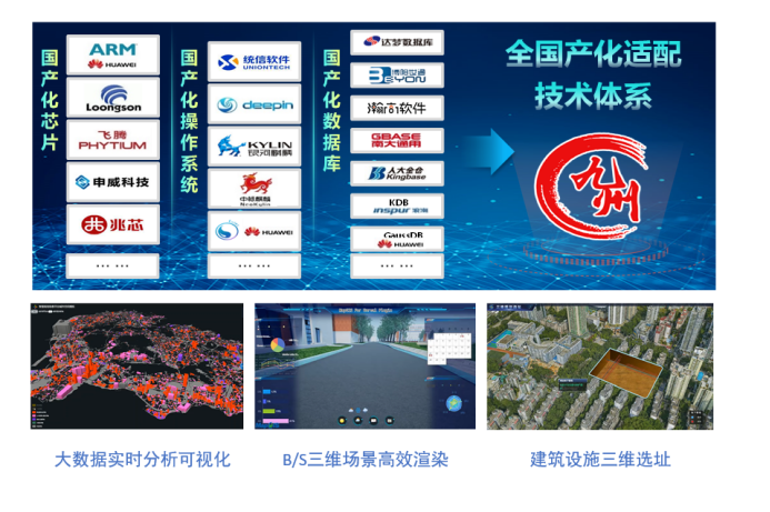 研究中心致力于全面适配自主软硬件生态的三维GIS平台国产化技术突破,研发的自主可控GIS平台荣获2020年国家科技进步二等奖。另外,研究中心联合组织二十余家单位提出了一种开放式、可扩展的三维模型数据格式及服务接口规范(M3D),制定了全空间三维模型服务标准(T/CIIA008-2021),涵盖空中、地上、地表、地下等范围的数据类型。基于标准,研发大规模场景三维渲染引擎,实现跨操作系统、设备、浏览器的海量地上下数据无缝切换、一体化展示。
