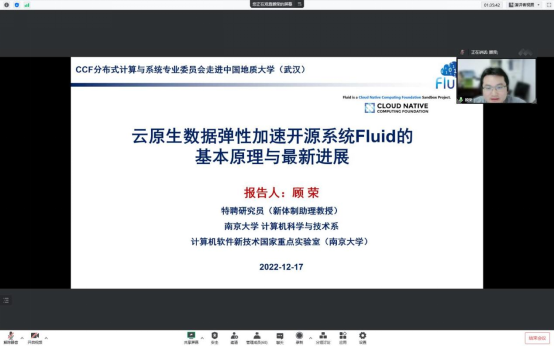 南京大学顾荣助理教授,做了题为《云原生数据弹性加速开源系统Fluid的基本原理与最新进展》的报告。顾荣教授的报告,针对当前数据密集型应用(深度学习、大数据查询等)在分布式云原生平台上面临数据访问方面的多重挑战,介绍了团队研制的开源云原生弹性数据加速系统Fluid及最新功能进展。Fluid开源系统的核心功能包括:云原生数据抽象、缓存弹性扩缩容、数据应用协同编排,已入选国际云原生计算基金会(CNCF),开源社区用户包括阿里云、腾讯云、百度云、中兴、微博、哔哩哔哩、中国电信、OPPO等10多个行业领军型企业,被评为2021年度中国尖峰开源项目。