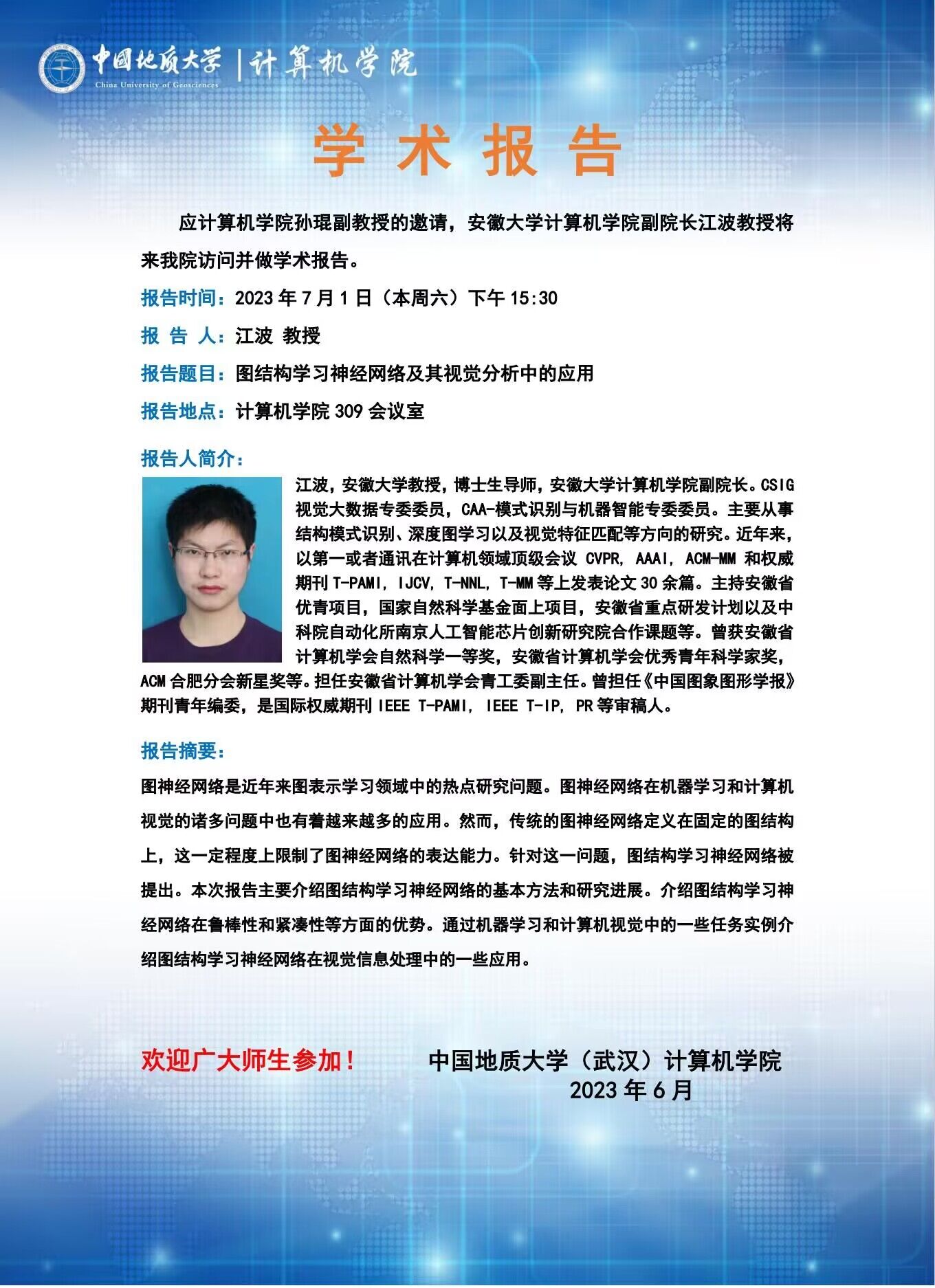 学术报告:安徽大学今年会体育官网副院长江波教授——图结构学习神经网络及其视觉分析中的应用