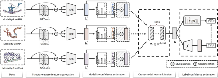 随着传感技术的进步,从不同来源收集的多模态数据越来越多。多模态分类旨在整合多模态数据中的互补信息,以提高模型分类性能。然而,现有的多模态分类方法在集成全局结构信息和提供可靠的多模态融合方面基本较弱,尤其是在安全敏感的实际应用(如医疗诊断)中。在本文中,我们提出了一种新颖的用于可信多模态分类的动态多注意力网络。为了捕获固有的模态特定的结构信息,我们设计了一个结构感知特征聚合模块来学习相应的保留结构的全局紧凑特征表示。引入了一种基于模态置信度估计策略的透明融合策略,以跟踪不同模态内的信息变化,用于动态融合。为了促进更有效的多模态融合,我们引入了一个跨模态低秩融合模块,以降低基于张量的融合的复杂性,并通过秩注意机制激活不同秩特征的含义。除此之外,我们还设计了一个标签置信度估计模块,以驱动网络生成更可信的置信度。引入类内注意力损失来监督网络训练。在四个真实世界的多模态数据集上进行的大量实验表明,与其他最先进的方法相比,所提出的方法具有竞争力。