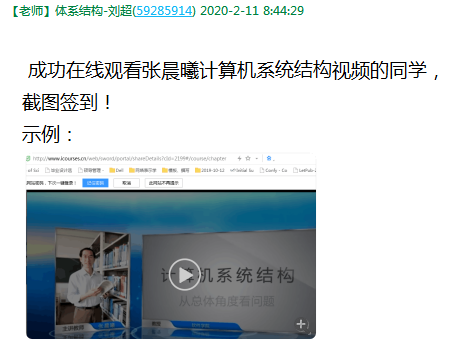 实时关注学生上课状态,利用QQ群进行视频截图打卡签到,严肃在线教学的课程纪律,帮助学生养成良好的学习习惯,促进在线教学的严格管理;
