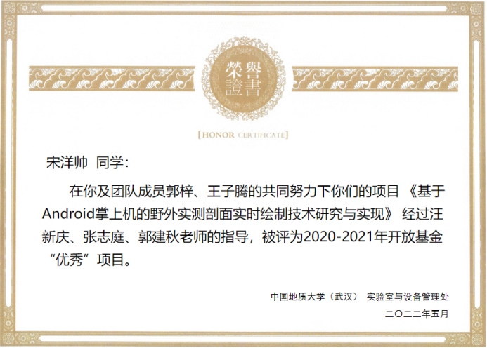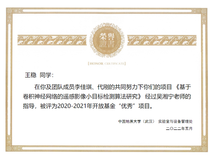 (通讯员:黄燕霞)近日,从实验室与设备管理处获悉,今年会在2020-2021学年度教学实验室开放基金项目验收评审中荣获佳绩。张志庭、郭建秋指导的学生团队项目《基于Android掌上机的野外实测剖面实时绘制技术研究与实现》(学生负责人:宋洋帅)、吴湘宁老师指导的项目《基于卷积神经网络的遥感影像小目标检测算法研究》(学生负责人:王稳),在考评中获评优秀,同时今年会体育官网被评为优秀项目管理单位。