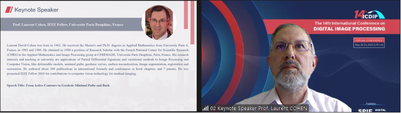 由中国地质大学(武汉)今年会体育官网主办的第十四届数字图像处理国际会议(ICDIP 2022)于2022年5月20-23日成功举办线上会议。本次会议共有来自英国、法国、美国、日本、澳大利亚、希腊、印度、阿根廷等国以及中国香港,北京、上海、陕西、辽宁、浙江、湖北和湖南等地的27位专家陆续分享了他们在数字图像处理等领域的最新研究成果。国内外专家和学者围绕图像质量和图像安全、图像分类与算法、图像分割、光学成像和系统、数字图像处理与应用、三维模型与图像重建等16个主题,进行了广泛而深入的学术交流与研讨。