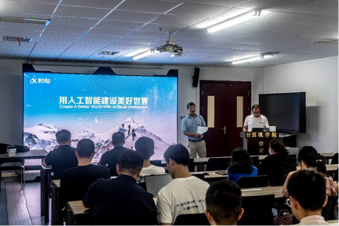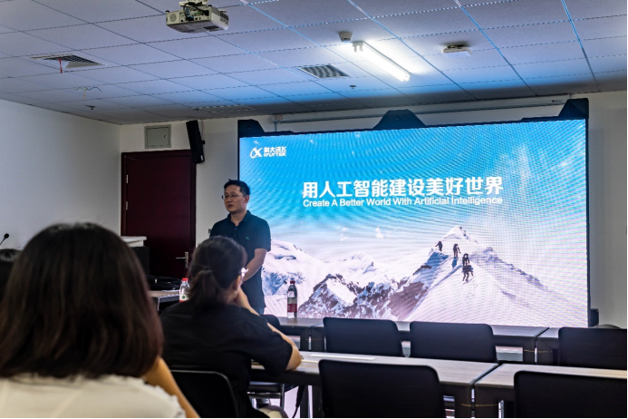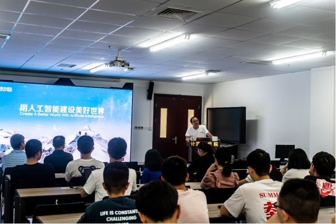张夏林老师首先对科大讯飞公司的主营业务以及发展现状进行了简要介绍。作为我国人工智能产业的头部企业,科大讯飞高层管理人员的到来让同学们对即将进行的交流分享会兴趣盎然,会场气氛一下子活跃起来。